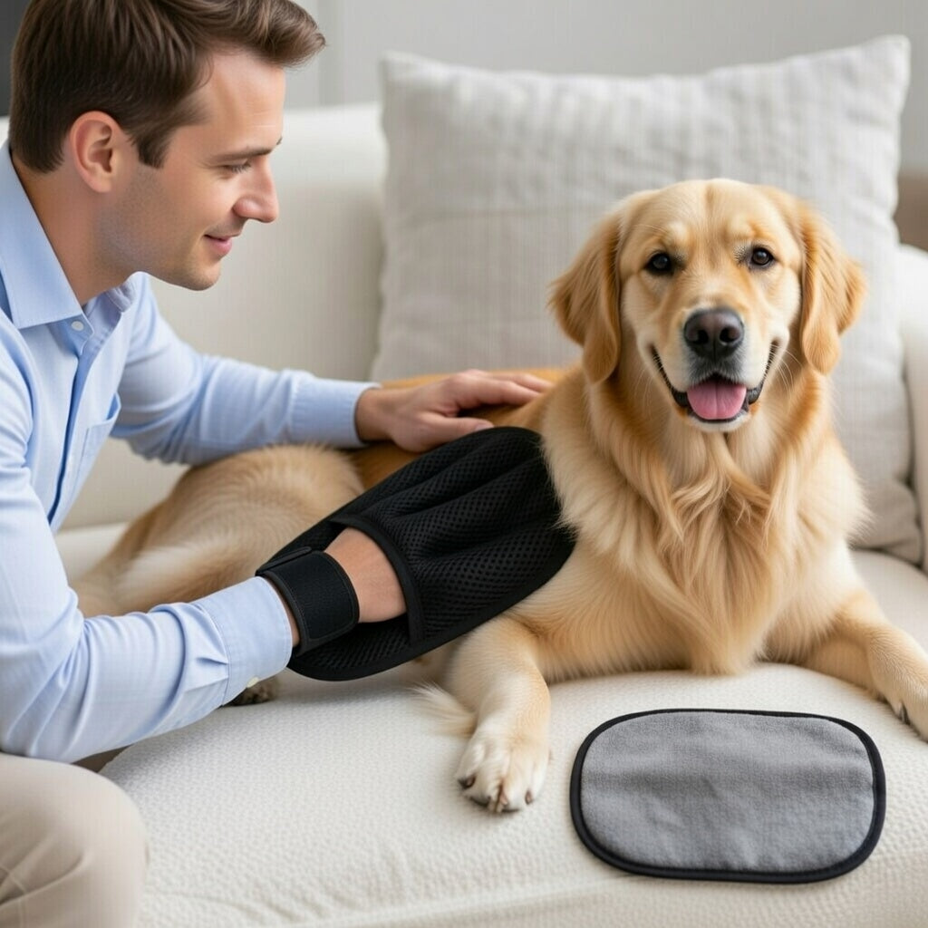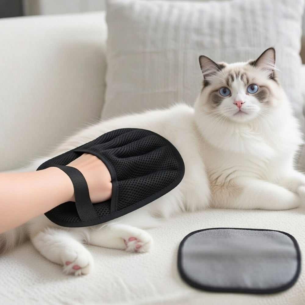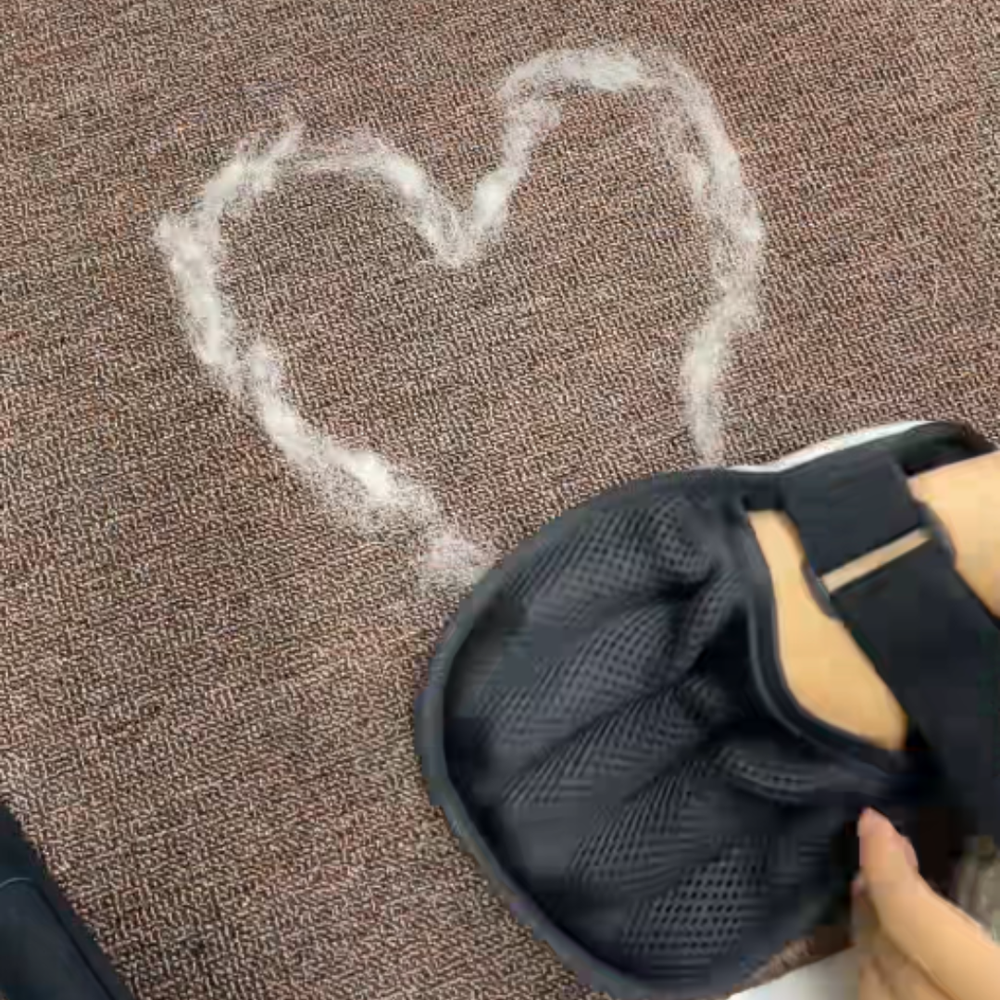 Eén handschoen. Doet wat een plakroller, een borstel en stofzuiger samen niet kunnen.